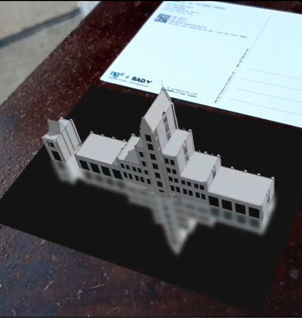 Hinting at the unfolding of our near future, a digital twin of the cut-out building, fusing past, present and future with our current reality. The buildings, some still existing, some a long-lost memory, literally pop out from the postcards and can be virtually revived and explored.